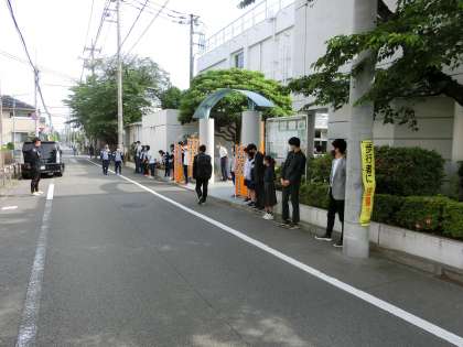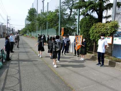 令和4年度は、5月11日、5月12日の午前8時から8時20分の間、生活指導部と生徒会担当の職員を中心として、生徒会役員6名、代表委員13名の合計19名の生徒と職員で、正門、東門で挨拶運動を行いました。