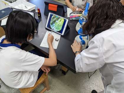 興味津々に顕微鏡を覗き込んで、写真をとても上手に撮っていました。