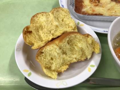 今日のパンはかぼちゃが練り込んであり、食欲のわく、きれいな黄色でした。今季初の柿もあり、トレーの上がほんのりと華やかに彩られました。