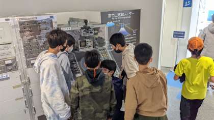 富士山レーダードーム館で、さまざまな体験コーナーを楽しみながら、学んでいます。