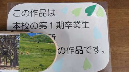 温かみのある作風、形、色彩で、ご本人から生徒の皆さんへのメッセージも記していただいています。