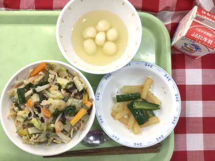 「ちゃんぽん麺、華風漬け、かんざらし、牛乳」です。