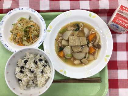 金沢にいる3年生は、班ごとのお昼ごはんとのことですので、それぞれに美味しい名物を食べていることでしょう。給食は、石川県の郷土料理から「みたま」と「治部煮」を作りました。