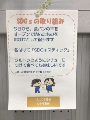 帝国ホテルでは、耳まで白い食パンを開発し、切り落とさないサンドイッチを作っているようです。大手製パン業者さんは、切り落とした耳を別の商品として活用しています。小さな活動ですが、子どもたちの心に残ってくれるといいなと思います。