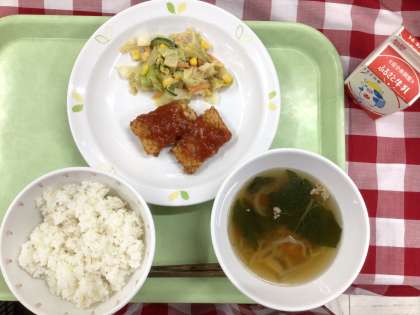 お日様が隠れている1日かと覚悟していましたが雲が薄くなり明るくなってきました。今日の主食「いかのチリソース」は、1人2切れですのでチリソースに和えず、後がけの形式です。検食を済ませた校長先生からは「おしゃれなおかずだったね」と声をかけていただきました。美味しい味もさることながら、美しく盛り付けをしてくださった調理さんにも感謝を込めて伝えたいと思います。