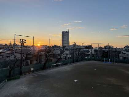 今朝は東の空から日が上る瞬間の綺麗な朝焼けを見ることができました。給食調理さんは、この時間ぐらいから準備を始めます。