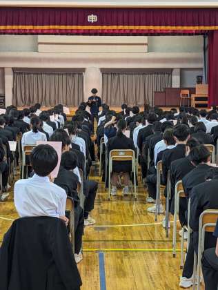 全校生徒が一堂に会し、用賀中学校のきまり、ルールについて共通確認を行いました。
