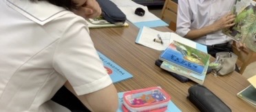 3年生で読み聞かせの授業を行いました。たくさんの絵本に「懐かしい〜」と興奮した様子。絵本を読むのは案外難しかったようで、文字が読みにくい!手が疲れた!など、読み手の気持ちがわかった様子でした。