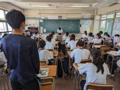 こちらのクラスでは代表生徒が前に立ち、傾聴を促しています。