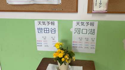 廊下にも掲示しておりますが、河口湖の気温は東京よりも暑いと予想されています。体調管理に努めてぜひ充実した行事にしてください。