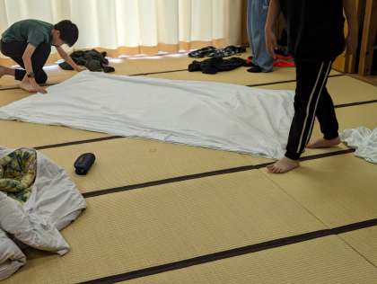 顔を洗って、布団を畳んで、着替えをして、