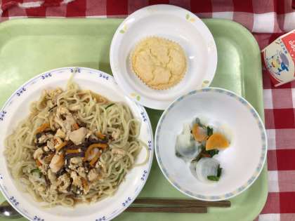 「京都冷麺、千枚漬け、米粉ケーキ、牛乳」です。