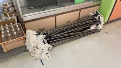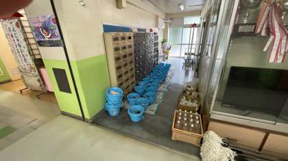 今日は大掃除の日です。美化委員を中心に用具の準備をしております。