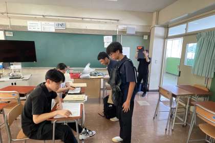どの生徒も緊張の様子で、挨拶の練習やしっかりとした受け答えのトレーニングをしていました