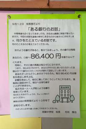 2学期になり校長室から生徒の皆さんへお便りを出しています