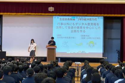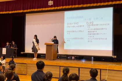 学校を良くするには、生徒が役員だけの力ではできません。生徒が一丸となってみんなで良くなっていこうと言う気持ちを持って、役員の皆さんは全校のリーダーとなるよう期待しています