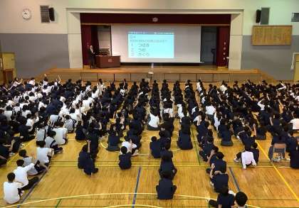 また、1日(月)の1時間目に、校長先生による開校記念日のお話がありました。