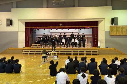 今日は課題曲である時の旅人を4クラスとも発表し、今までの練習成果を確認しました