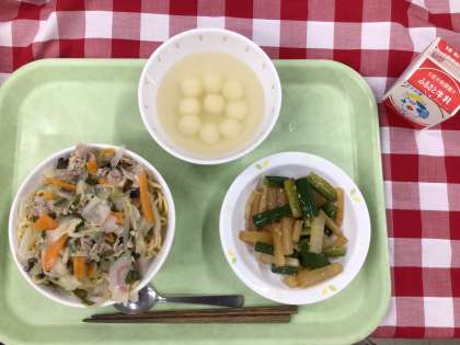 明日の食育の日に先駆け、学び舎給食で長崎県の郷土料理を作りました。お馴染みの「ちゃんぽん麺」は、鶏ガラと豚骨を使ったWスープです。担任の先生が