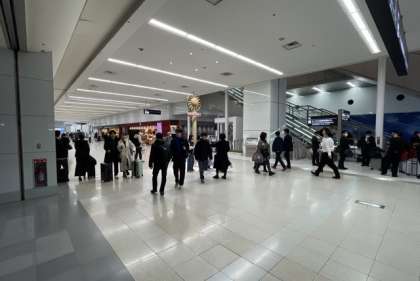 午後は羽田空港の施設見学ツアーです。集合場所の太陽の塔の前に集まってきています。