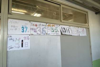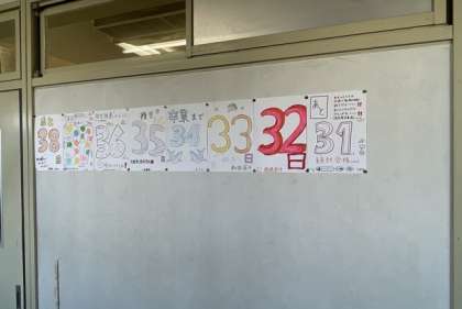 3年生の廊下を見ると、カウントダウンのカレンダーが貼られるようになりました