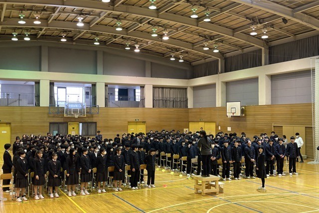 三年生の皆さんにとって、いよいよ中学校生活も残りわずかとなりました。登校するのはあと8日。そんな中、今日から卒業式の練習が本格的に始まりました。卒業式は、三年間の学びや成長の集大成を迎える大切な時間です。その意義をしっかり理解し、厳粛な雰囲気の中で素晴らしい式となるよう、一人ひとりが真剣な表情で練習に励んでいます。