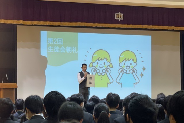 本日3月11日、生徒会朝礼の前に、全校生徒で東日本大震災の犠牲者の方々に黙とうを捧げました。