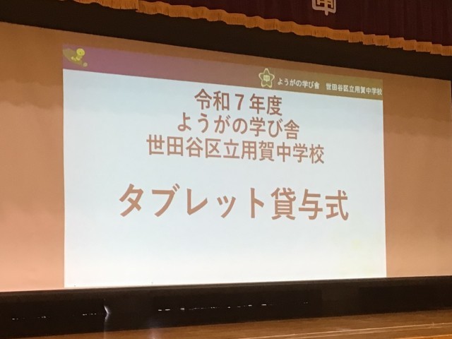 4月、新たに用賀中学校に入学した1年生に対し、本校では「iPad貸与式」を行いました。これは、これからの学びに欠かせないICT機器を正しく、安全に活用するための第一歩です。貸与式では、生徒一人ひとりにiPadを手渡し、学習活動の中での活用方法を丁寧に説明しました。用賀中学校では、タブレットは単なる便利な道具ではなく、「学ぶための道具」として位置づけています。また、タブレットを使用するにあたり、注意してほしい点についても伝えました。SNSを通じたトラブルや、個人情報の取り扱いについて、専門的な視点から具体的な事例を交えて解説し、「正しく使う力=情報モラル」を育む重要性を強調しました。生徒たちは真剣な表情で話を聞き、これからの学びに期待を寄せている様子でした。保護者の皆様、地域の皆様にも、こうした取組を通じて、生徒たちが安心・安全にデジタル社会を生き抜く力を育てていけるよう、ご理解とご協力をお願い申し上げます。今後も定期的に、情報モラルやICT活用についての指導を行いながら、生徒の健やかな成長を支えてまいります。世田谷区立用賀中学校 校長 毛利 慎治 | |||