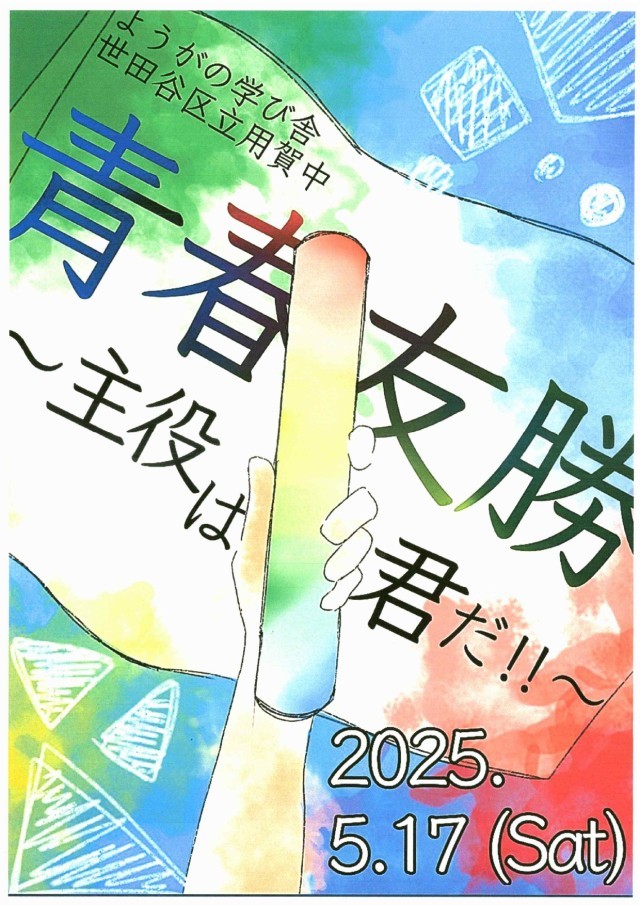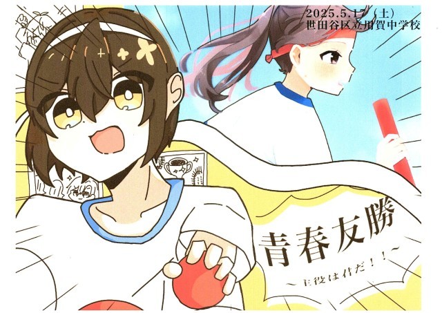 みなさん、今年の用賀中学校の運動会、テーマは「青春友勝」。勝ち負けだけではない、心と心のぶつかり合い、支え合い、成長し合う時間を、どうかポスターとともに感じ取っていただけたら嬉しいです。