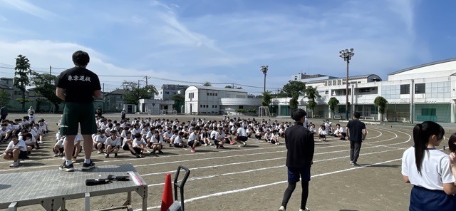 いよいよ本番が近づいてきた用賀中学校の運動会。今朝、5月13日(火)の1時間目に全体練習が行われました。快晴の空の下、全校生徒がグラウンドに集まり、明日の予行練習に向けた流れの確認や、開会閉会式のリハーサルを実施しました。