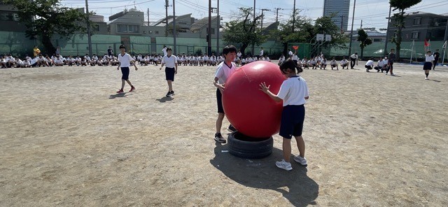 また、本日は生徒会種目「大玉送り」の動きも確認。列ごとに息を合わせて前後に大玉を送っていくこの競技は、見た目以上にチームワークと集中力が必要です。今回はしっかりと声をかけ合いながら、スムーズに進行することができました。