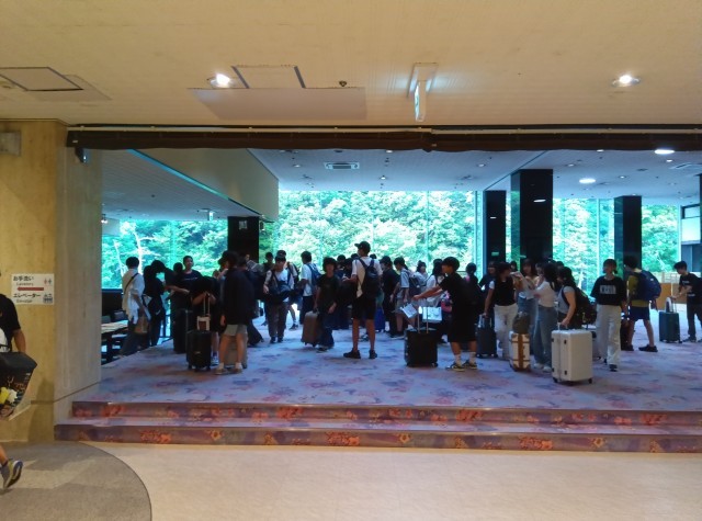 理科係や 班長が仕事をしながら部屋に入っていきます
