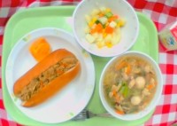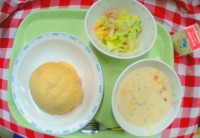 献立は 「ビスキュイパン、キャベツとツナのサラダ、コーン...