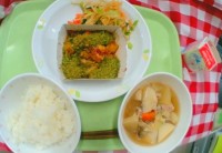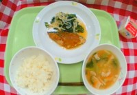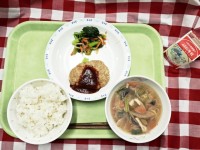 献立は「ごはん、鯵バーグ、野菜の胡麻酢和え、ちゃんこ鍋、牛乳」です。 ...