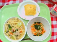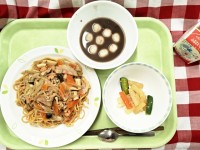 献立は「五目あんかけ焼きそば、野菜の中華風味、白玉しるこ、牛乳」です。 ...