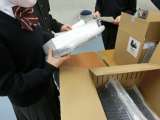 本日3時間目にタブレットを配布しました。写真は特活室での配布風景と体育館での説明...