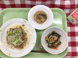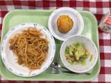 献立は 「スパゲティナポリタン、イタリアンサラダ、キャロットマフィン、牛乳」です...