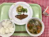 献立は 「ごはん、鯖の味噌煮、きのこ入り煮浸し、八戸せんべい汁、牛乳」です。 ...