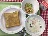 献立は 「セサミトースト、ツナサラダ、肉団子入りシチュー、牛乳」です。 ...
