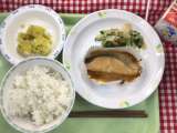 献立は 「麦ごはん、鮭の味噌マヨネーズ焼き、カレー粉ふき芋、和風サラダ、牛乳」 ...