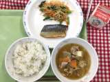 献立は 「麦ごはん、鯖の塩焼き、野菜のおかかかけ、石川めった汁、牛乳」です。 ...