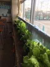 技術の時間に栽培しているレーフレタスが順調に成長しています。この後家庭科の授業で...