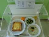 献立 ハムたまごトースト・さつま芋のシチュー・小松菜のサラダ・みかん・牛乳 主...