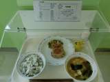 献立 じゃこ入りわかめご飯・ひじきと蓮根のハンバーグ・野菜のからしじょうゆあえ・...