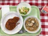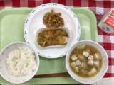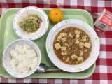 献立は 「ごはん、麻婆豆腐、中華サラダ、みかん、牛乳」です。 11月がスタ...