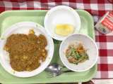 献立は 「キーマカレーライス、蒟蒻サラダ、りんご、牛乳」です。 今日は11...