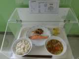 【献立】 雑穀ご飯・鮭のゆず風味焼き・野菜のからし和え・かぼちゃのだんご汁・牛乳...