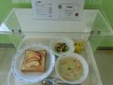 【献立】 アップルシナモントースト・クリームスープ・ビーンズサラダ・牛乳 【主...
