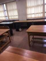 いつもは清掃できていない教室の清掃をボランティアが行いました。 寒い中、床を水拭...