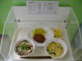 【献立】 大豆入りひじきご飯・じゃこ天・野菜の生姜風味・かき玉汁・牛乳 【主な...